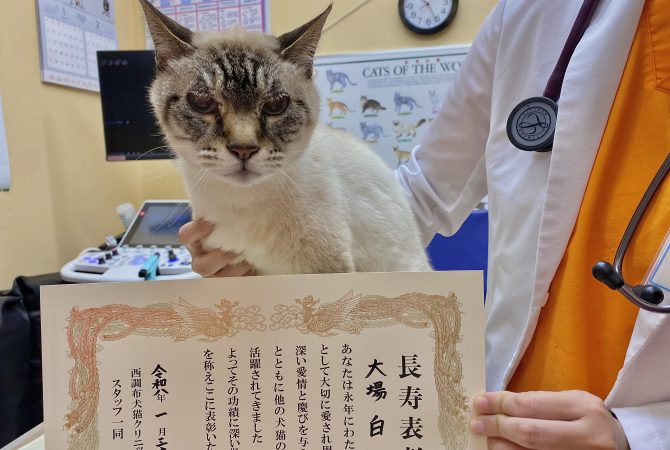 『子猫の時から約17年間家族として暮らしてきたので、自分がお腹を痛めて産んだのではと錯覚するくらい息子同然の存在で、我が家のかわいい末っ子です(実際には2番目だけど…)長生きしてほしいです。』