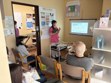 お昼の時間だと、わんちゃんたちもウトウトしていますが、今日はみんなシャキッとお話を聞いてくれて、実践タイムもとても協力してくれました☺️