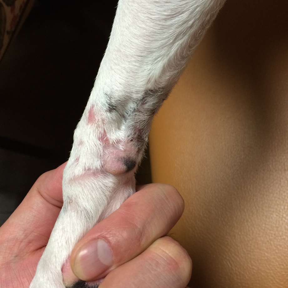 これは現在の写真です。この位置の腫瘍は非常に厄介で手術が大変でしたが今はすっかりよくなりました。ご心配して頂いて本当にありがとうございます。本人(本犬?)も何事もなかったように過ごしております。