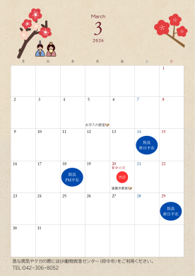 3月の診療日のお知らせ🐾